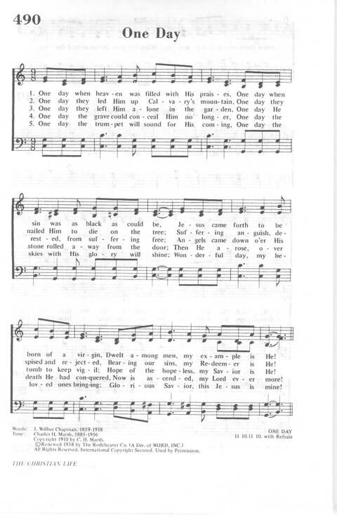 The hymn "One Day (When Heaven Was Filled with His Praises)" was written by J. Wilbur Chapman (1859–1918), a prominent American evangelist and hymn writer. The hymn was first published in 1908 and has since become a well-loved song, especially in evangelical circles.